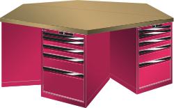 "longDescription": "LISTA 6-Eck-Werkbank, Lista Einheit: 27x36E, BxTxH: 2500x2165x840mm, Material: Multiplex, Stärke 40mm, inkl. Vormontage und Befestigungsmaterial, Max. Belastung: 3000kg, Anzahl Schubladen: 6 x 5 Schubladen, Anzahl Fronthöhen (Tragkraft): 1x50mm (75kg), 2x100mm (75kg), 1x150mm (75kg), 1x300mm (75kg), Schubladen-Nutzfläche BxT: 459x612mm, Schliessart: Key Lock, Standard-Schliessung mit Wechselzylinder inkl. zwei Schlüssel mit Schlüsselnummer, Farbe Gehäuse/Füsse: Rubinrot RAL 3003, Farbe Schubladen: Rubinrot RAL 3003. Hohe Ausführungsvielfalt dank verschiedener Komponenten, Unterbauten, Materialien und Oberflächen. Jederzeit anpassbar an neue Arbeitsumgebungen durch den flexiblen Ein- und Umbau sämtlicher Komponenten im Baukastensystem. Schnelle und einfache Montage dank Werkbankplatten mit Vorbohrungen inkl. Hülsen zur Befestigung sämtlicher Unterbauten und Schubladenschränke. Allgemeine Vorteile der LISTA-Schubladenschränke<br>",