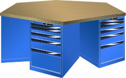 "longDescription": "LISTA 6-Eck-Werkbank, Lista Einheit: 27x36E, BxTxH: 2500x2165x840mm, Material: Multiplex, Stärke 40mm, inkl. Vormontage und Befestigungsmaterial, Max. Belastung: 3000kg, Anzahl Schubladen: 6 x 5 Schubladen, Anzahl Fronthöhen (Tragkraft): 1x50mm (75kg), 2x100mm (75kg), 1x150mm (75kg), 1x300mm (75kg), Schubladen-Nutzfläche BxT: 459x612mm, Schliessart: Key Lock, Standard-Schliessung mit Wechselzylinder inkl. zwei Schlüssel mit Schlüsselnummer, Farbe Gehäuse/Füsse: Signalblau RAL 5005, Farbe Schubladen: Signalblau RAL 5005. Hohe Ausführungsvielfalt dank verschiedener Komponenten, Unterbauten, Materialien und Oberflächen. Jederzeit anpassbar an neue Arbeitsumgebungen durch den flexiblen Ein- und Umbau sämtlicher Komponenten im Baukastensystem. Schnelle und einfache Montage dank Werkbankplatten mit Vorbohrungen inkl. Hülsen zur Befestigung sämtlicher Unterbauten und Schubladenschränke. Allgemeine Vorteile der LISTA-Schubladenschränke<br>",