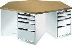 "longDescription": "LISTA 6-Eck-Werkbank, Lista Einheit: 27x36E, BxTxH: 2500x2165x840mm, Material: Multiplex, Stärke 40mm, inkl. Vormontage und Befestigungsmaterial, Max. Belastung: 3000kg, Anzahl Schubladen: 6 x 4 Schubladen, Anzahl Fronthöhen (Tragkraft): 2x100mm (75kg), 1x200mm (75kg), 1x300mm (75kg), Schubladen-Nutzfläche BxT: 459x612mm, Schliessart: Code Lock, elektronisches Zahlenschloss mit 10 Ziffern für 4- bis 6-stellige Codes, bis 100 Codes, Farbe Gehäuse/Füsse: Reinweiss RAL 9010, Farbe Schubladen: Reinweiss RAL 9010. Hohe Ausführungsvielfalt dank verschiedener Komponenten, Unterbauten, Materialien und Oberflächen. Jederzeit anpassbar an neue Arbeitsumgebungen durch den flexiblen Ein- und Umbau sämtlicher Komponenten im Baukastensystem. Schnelle und einfache Montage dank Werkbankplatten mit Vorbohrungen inkl. Hülsen zur Befestigung sämtlicher Unterbauten und Schubladenschränke. Allgemeine Vorteile der LISTA-Schubladenschränke<br>",