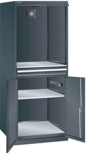 "longDescription": "LISTA Computerschrank, Lista Einheit: 36x36E, BxTxH: 717x725x1625mm, Arbeitshöhe: 880mm, Ausführung/Typ: D, Ausstattung: 1 Monitorfach (BxTxH 650x620x605mm, Grösse Sichtfenster BxH: 445x525mm) mit Einschwenktür, jeweils mit Zylinderschloss, 1 Verstellboden glatt im Monitorfach, 1 arretierbare 75 mm Keyboard-Schublade mit Vollauszug, 1 Hardwareschrank mit Flügeltüren inklusive Schliessung, fest eingebauter Stromversorgung, bestehend aus einer 4-fach Steckerleiste (230 V) mit beleuchtetem Schalter, Geräteauszug, Verstellboden glatt, 1 eingebauter Ventilator, 1 Anschlusskabel, 5 m lang, 1 Öffnung in Rückwand mit abnehmbarer Abdeckung, Schliessart: Key Lock, Standard-Schliessung mit Wechselzylinder inkl. 2 Schlüsseln mit Schlüsselnummer, Farbe Gehäuse: Schwarz NCS S 9000-N, Farbe Türen: Schwarz NCS S 9000-N. Computer und die dazugehörige Hard- und Software müssen in der Produktion vor Staub, Schmutz und unerlaubtem Zugriff geschützt werden. Mit dem LISTA Computerschrank steht eine sichere und bewährte Lösung zur Verfügung<br>",