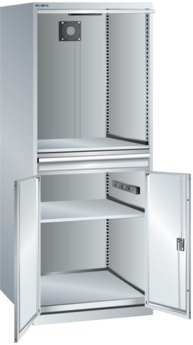 "longDescription": "LISTA Computerschrank, Lista Einheit: 36x36E, BxTxH: 717x725x1625mm, Arbeitshöhe: 880mm, Ausführung/Typ: F, Ausstattung: 1 Monitorfach (BxTxH 650x620x605mm, Grösse Sichtfenster BxH: 445x525mm) mit Einschwenktür, jeweils mit Zylinderschloss, 1 Verstellboden glatt im Monitorfach, 1 arretierbare 75 mm Keyboard-Schublade mit Vollauszug, 1 Hardwareschrank mit Flügeltüren inklusive Schliessung, fest eingebauter Stromversorgung, bestehend aus einer 4-fach Steckerleiste (230 V) mit beleuchtetem Schalter, Geräteauszug, Verstellboden glatt, 1 eingebauter Ventilator, 1 Anschlusskabel, 5 m lang, 1 Öffnung in Rückwand mit abnehmbarer Abdeckung, Schliessart: Key Lock, Standard-Schliessung mit Wechselzylinder inkl. 2 Schlüsseln mit Schlüsselnummer, Farbe Gehäuse: Lichtgrau RAL 7035, Farbe Türen: Lichtgrau RAL 7035. Computer und die dazugehörige Hard- und Software müssen in der Produktion vor Staub, Schmutz und unerlaubtem Zugriff geschützt werden. Mit dem LISTA Computerschrank steht eine sichere und bewährte Lösung zur Verfügung<br>",