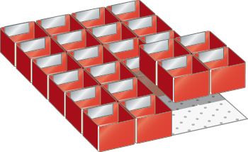 "longDescription": "LISTA Einteilungsmaterial-Set, Ausführung: Einsatzkästen, Lista Einheit: 18x27E, Schubladennutzfläche BxT: 306x459mm, Für Fronthöhe: 75mm, Ausstattung: 24 Einsatzkästen 75x75mm, Ausführung: Polystyrol-Kunststoff, Farbe: rot. Volle Kombinierbarkeit mit dem kompletten LISTA-Sortiment durch einheitliches Masssystem. Schnelle und einfache Montage dank umlaufendem Schubladenschlitzraster und gelochter Schubladenböden<br>",