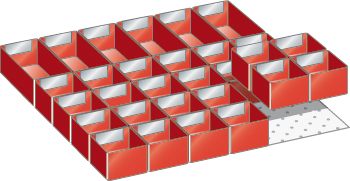 "longDescription": "LISTA Einteilungsmaterial-Set, Ausführung: Einsatzkästen, Lista Einheit: 27x27E, Schubladennutzfläche BxT: 459x459mm, Für Fronthöhe: 50mm, Ausstattung: 24 Einsatzkästen 75x75mm, 6 Einsatzkästen 150x75mm, Ausführung: Polystyrol-Kunststoff, Farbe: rot. Volle Kombinierbarkeit mit dem kompletten LISTA-Sortiment durch einheitliches Masssystem. Schnelle und einfache Montage dank umlaufendem Schubladenschlitzraster und gelochter Schubladenböden<br>",