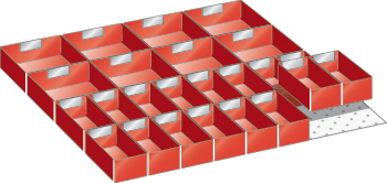 "longDescription": "LISTA Einteilungsmaterial-Set, Ausführung: Einsatzkästen, Lista Einheit: 36x36E, Schubladennutzfläche BxT: 612x612mm, Für Fronthöhe: 50mm, Ausstattung: 16 Einsatzkästen 150x75mm, 8 Einsatzkästen 150x150mm, Ausführung: Polystyrol-Kunststoff, Farbe: rot. Volle Kombinierbarkeit mit dem kompletten LISTA-Sortiment durch einheitliches Masssystem. Schnelle und einfache Montage dank umlaufendem Schubladenschlitzraster und gelochter Schubladenböden<br>",