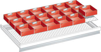 "longDescription": "LISTA Einteilungsmaterial-Set, Ausführung: Einsatzkästen, Lista Einheit: 54x27E, Schubladennutzfläche BxT: 918x459mm, Für Fronthöhe: 75mm, Ausstattung: 18 Einsatzkästen 150x150mm, Ausführung: Polystyrol-Kunststoff, Farbe: rot. Volle Kombinierbarkeit mit dem kompletten LISTA-Sortiment durch einheitliches Masssystem. Schnelle und einfache Montage dank umlaufendem Schubladenschlitzraster und gelochter Schubladenböden<br>",