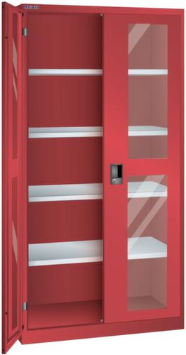 "longDescription": "LISTA Flügeltürschrank, BxTxH: 1000x400x1950mm, Anzahl Verstellböden: 4 (60kg), 30mm stark, verzinkt, Schliessart: Code Lock, elektronisches Zahlenschloss mit 10 Ziffern für 4- bis 6-stellige Codes, bis 100 Codes, Türlagerung: Sichtfenster-Flügeltüren mit Drehbolzenlagerung, Öffnungswinkel ca. 115 Grad, Farbe Gehäuse: Rubinrot RAL 3003, Farbe Türen: Rubinrot RAL 3003. Höchste Stabilität durch eine Gehäusetragkraft bis 500 kg. Hohe Traglasten: 60 kg oder 100 kg pro Verstellboden, 50 kg pro Schublade/Auszugbogen. Exzellente Schutzeigenschaften gegen Schmutz, Flüssigkeiten und mechanische Beanspruchung durch geschlossenes Gehäuse mit schlag- und abriebfester Oberfläche. Flexible Ausstattungsmöglichkeiten mit Abdeckungen, Lochwänden, Hängemappenauszügen, Schreibpultaufsätzen und Garderobenstangen. Optimale Ordnung und Organisation durch optionalen Einbau von Schubladen und Auszugböden für eine saubere und übersichtliche Lagerung von Kleinteilen (bei Schranktiefe 580 mm). Sichere Verschliessbarkeit mit Vollblech- oder Sichtfenstertüren (einschlagend, aus einem Stück gekantet) und intelligenten Schliesssystemen. Jederzeit anpassbar an neues Lagergut durch den flexiblen Ein- und Umbau von Schubladen, Auszugböden und Verstellböden im 25-mm-Raster<br>",