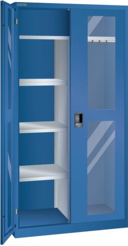 "longDescription": "LISTA Flügeltürschrank, BxTxH: 1000x500x1950mm, Schliessart: Key Lock, Standard-Schliessung mit Wechselzylinder inkl. 2 Schlüsseln mit Schlüsselnummer, Türlagerung: Sichtfenster-Flügeltüren mit Scharnierlagerung, Öffnungswinkel ca. 115 Grad, Ausstattung: mit Trennwand, 1 Verstellboden Nutzbreite 982 mm, 3 Verstellböden Nutzbreite 481 mm, 1 Garderobenstange mit 3 Kunststoffhaken, Farbe Gehäuse: Enzianblau RAL 5010, Farbe Türen: Enzianblau RAL 5010. Höchste Stabilität durch eine Gehäusetragkraft bis 500 kg. Hohe Traglasten: 60 kg oder 100 kg pro Verstellboden, 50 kg pro Schublade/Auszugbogen. Exzellente Schutzeigenschaften gegen Schmutz, Flüssigkeiten und mechanische Beanspruchung durch geschlossenes Gehäuse mit schlag- und abriebfester Oberfläche. Flexible Ausstattungsmöglichkeiten mit Abdeckungen, Lochwänden, Hängemappenauszügen, Schreibpultaufsätzen und Garderobenstangen. Optimale Ordnung und Organisation durch optionalen Einbau von Schubladen und Auszugböden für eine saubere und übersichtliche Lagerung von Kleinteilen (bei Schranktiefe 580 mm). Sichere Verschliessbarkeit mit Vollblech- oder Sichtfenstertüren (einschlagend, aus einem Stück gekantet) und intelligenten Schliesssystemen. Jederzeit anpassbar an neues Lagergut durch den flexiblen Ein- und Umbau von Schubladen, Auszugböden und Verstellböden im 25-mm-Raster<br>",