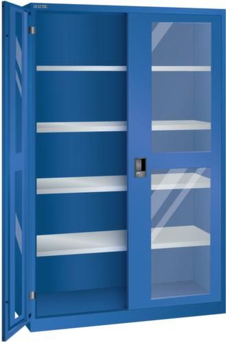 "longDescription": "LISTA Flügeltürschrank, BxTxH: 1250x400x1950mm, Anzahl Verstellböden: 4 (60kg), 30mm stark, verzinkt, Schliessart: Code Lock, elektronisches Zahlenschloss mit 10 Ziffern für 4- bis 6-stellige Codes, bis 100 Codes, Türlagerung: Sichtfenster-Flügeltüren mit Drehbolzenlagerung, Öffnungswinkel ca. 115 Grad, Farbe Gehäuse: Signalblau RAL 5005, Farbe Türen: Signalblau RAL 5005. Höchste Stabilität durch eine Gehäusetragkraft bis 500 kg. Hohe Traglasten: 60 kg oder 100 kg pro Verstellboden, 50 kg pro Schublade/Auszugbogen. Exzellente Schutzeigenschaften gegen Schmutz, Flüssigkeiten und mechanische Beanspruchung durch geschlossenes Gehäuse mit schlag- und abriebfester Oberfläche. Flexible Ausstattungsmöglichkeiten mit Abdeckungen, Lochwänden, Hängemappenauszügen, Schreibpultaufsätzen und Garderobenstangen. Optimale Ordnung und Organisation durch optionalen Einbau von Schubladen und Auszugböden für eine saubere und übersichtliche Lagerung von Kleinteilen (bei Schranktiefe 580 mm). Sichere Verschliessbarkeit mit Vollblech- oder Sichtfenstertüren (einschlagend, aus einem Stück gekantet) und intelligenten Schliesssystemen. Jederzeit anpassbar an neues Lagergut durch den flexiblen Ein- und Umbau von Schubladen, Auszugböden und Verstellböden im 25-mm-Raster<br>",