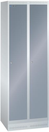 "longDescription": "LISTA Garderobenschrank, BxTxH: 600x500x1800mm, Anzahl Abteile: 2, Abteilbreite: 300mm, Ausstattung: je Abteil mit 1-flügeliger Vollblech-Tür einschlagend, Oberfläche mit Lochfeld zur zusätzlichen Belüftung (1 Abteil veschliessend), 1 Hutboden, 1 Kleiderstange mit je 3 verschiebbaren Kleiderhaken, 1 Handtuchhalter, mit Sockel 100mm hoch, Schliessart: Verschlussvorrichtung, Farbe Gehäuse: Lichtgrau RAL 7035, Farbe Türen: Grau metallic NCS S 6502-B. Höchste Stabilität durch in Drehbolzen gelagerte, rechts angeschlagene Flügeltüren mit Verstärkungstasche für mehr Einbruchsicherheit. Durchdachte Belüftung mit Belüftungsschlitzen an Gehäusedeckel und -boden. Optimale Hygiene dank glatter Abteilböden ohne Aufkantung für eine gründliche Reinigung der Abteile. Schutz vor Verschmutzung und Korrosion durch zusätzlich zur Pulverbeschichtung verzinkten Unterbau mit Sockel gegen Verschmutzungen unter dem Schrank oder Füssen für Feuchträume<br>",