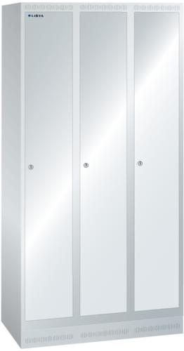 "longDescription": "LISTA Garderobenschrank, BxTxH: 900x500x1800mm, Anzahl Abteile: 3, Abteilbreite: 300mm, Ausstattung: je Abteil mit 1-flügeliger Vollblech-Tür einschlagend, Oberfläche mit Lochfeld zur zusätzlichen Belüftung (1 Abteil veschliessend), 1 Hutboden, 1 Kleiderstange mit je 3 verschiebbaren Kleiderhaken, 1 Handtuchhalter, mit Sockel 100mm hoch, Schliessart: Verschlussvorrichtung, Farbe Gehäuse: Lichtgrau RAL 7035, Farbe Türen: Reinweiss RAL 9010. Höchste Stabilität durch in Drehbolzen gelagerte, rechts angeschlagene Flügeltüren mit Verstärkungstasche für mehr Einbruchsicherheit. Durchdachte Belüftung mit Belüftungsschlitzen an Gehäusedeckel und -boden. Optimale Hygiene dank glatter Abteilböden ohne Aufkantung für eine gründliche Reinigung der Abteile. Schutz vor Verschmutzung und Korrosion durch zusätzlich zur Pulverbeschichtung verzinkten Unterbau mit Sockel gegen Verschmutzungen unter dem Schrank oder Füssen für Feuchträume<br>",