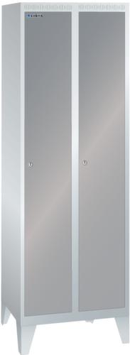 "longDescription": "LISTA Garderobenschrank, BxTxH: 600x500x1850mm, Anzahl Abteile: 2, Abteilbreite: 300mm, Ausstattung: je Abteil mit 1-flügeliger Vollblech-Tür einschlagend, Oberfläche glatt (1 Abteil veschliessend), 1 Hutboden, 1 Kleiderstange mit je 3 verschiebbaren Kleiderhaken, 1 Handtuchhalter, mit Füssen 150mm hoch, Schliessart: Verschlussvorrichtung, Farbe Gehäuse: Lichtgrau RAL 7035, Farbe Türen: Taubengrau NCS S 4502-B. Höchste Stabilität durch in Drehbolzen gelagerte, rechts angeschlagene Flügeltüren mit Verstärkungstasche für mehr Einbruchsicherheit. Durchdachte Belüftung mit Belüftungsschlitzen an Gehäusedeckel und -boden. Optimale Hygiene dank glatter Abteilböden ohne Aufkantung für eine gründliche Reinigung der Abteile. Schutz vor Verschmutzung und Korrosion durch zusätzlich zur Pulverbeschichtung verzinkten Unterbau mit Sockel gegen Verschmutzungen unter dem Schrank oder Füssen für Feuchträume<br>",