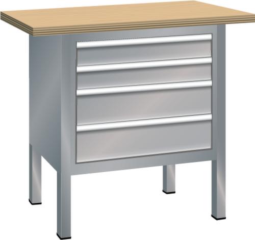 "longDescription": "LISTA Kompaktwerkbank, BxTxH: 1000x700x850mm, Material: Buche, 50mm stark, Max. Belastung: 1500kg, Anzahl Schubladen: 4, Anzahl Fronthöhen (Tragkraft): 2x100mm (75kg), 2x150mm (75kg), Schubladen-Nutzfläche BxT: 500x600mm, Schliessart: Key Lock, Standard-Schliessung mit Wechselzylinder inkl. 2 Schlüsseln mit Schlüsselnummer, Farbe Gehäuse: Taubengrau NCS S 4502-B, Farbe Schubladen/Türen: Taubengrau NCS S 4502-B. Höchste Stabilität: Gehäuse bis 1,5 t belastbar, alle Verbindungen verschweisst. Platzsparende und übersichtliche Lagerung in variablen Unterbauten mit leichtgängigen Schubladen mit 75 kg Tragkraft mit Vollauszug und vielfältigem Einteilungsmaterial. Sichere Verschliessbarkeit mit Schliesssystem Key Lock zur gleichzeitigen Sicherung aller Schubladen und Türen vor ungewolltem Zugriff. Hohe Ausführungsvielfalt dank verschiedener Komponenten, Unterbauten, Materialien und Oberflächen. Höchster Bedienkomfort und Ergonomie durch höhenverstellbare Werkbankfüsse für ergonomisch richtige Arbeitshöhen und Beinfreiheit bei sitzenden Tätigkeiten sowie unser modulares Aufbauten-System. Jederzeit anpassbar an neue Arbeitsumgebungen durch den flexiblen Ein- und Umbau sämtlicher Komponenten im Baukastensystem<br>",