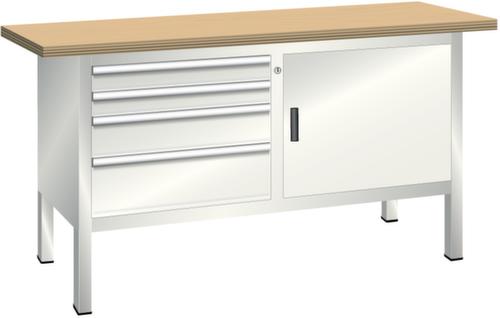 "longDescription": "LISTA Kompaktwerkbank, BxTxH: 1500x700x840mm, Material: Multiplex, 40mm stark, Max. Belastung: 1500kg, Anzahl Schubladen: 4, Anzahl Fronthöhen (Tragkraft): 2x75mm (75kg), 1x150mm (75kg), 1x200mm (75kg), Schubladen-Nutzfläche BxT: 500x600mm, Fächer mit Türen: 1x500mm, Anzahl Fachböden: 2 (50kg), Schliessart: Key Lock, Standard-Schliessung mit Wechselzylinder inkl. 2 Schlüsseln mit Schlüsselnummer, Farbe Gehäuse: Grauweiss RAL 9002, Farbe Schubladen/Türen: Grauweiss RAL 9002. Höchste Stabilität: Gehäuse bis 1,5 t belastbar, alle Verbindungen verschweisst. Platzsparende und übersichtliche Lagerung in variablen Unterbauten mit leichtgängigen Schubladen mit 75 kg Tragkraft mit Vollauszug und vielfältigem Einteilungsmaterial. Sichere Verschliessbarkeit mit Schliesssystem Key Lock zur gleichzeitigen Sicherung aller Schubladen und Türen vor ungewolltem Zugriff. Hohe Ausführungsvielfalt dank verschiedener Komponenten, Unterbauten, Materialien und Oberflächen. Höchster Bedienkomfort und Ergonomie durch höhenverstellbare Werkbankfüsse für ergonomisch richtige Arbeitshöhen und Beinfreiheit bei sitzenden Tätigkeiten sowie unser modulares Aufbauten-System. Jederzeit anpassbar an neue Arbeitsumgebungen durch den flexiblen Ein- und Umbau sämtlicher Komponenten im Baukastensystem<br>",