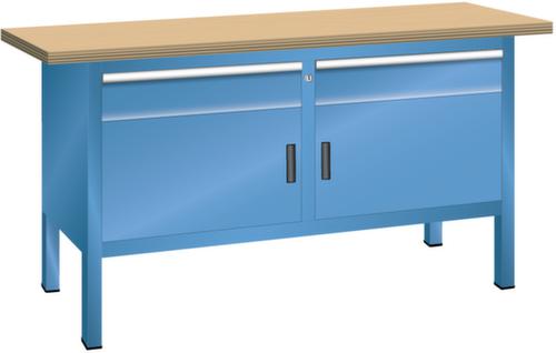 "longDescription": "LISTA Kompaktwerkbank, BxTxH: 1500x700x840mm, Material: Multiplex, 40mm stark, Max. Belastung: 1500kg, Anzahl Schubladen: 2, Anzahl Fronthöhen (Tragkraft): 2x150mm (75kg), Schubladen-Nutzfläche BxT: 500x600mm, Fächer mit Türen: 2x350mm, Anzahl Fachböden: 2 (50kg), Schliessart: Key Lock, Standard-Schliessung mit Wechselzylinder inkl. 2 Schlüsseln mit Schlüsselnummer, Farbe Gehäuse: Capriblau RAL 5019, Farbe Schubladen/Türen: Capriblau RAL 5019. Höchste Stabilität: Gehäuse bis 1,5 t belastbar, alle Verbindungen verschweisst. Platzsparende und übersichtliche Lagerung in variablen Unterbauten mit leichtgängigen Schubladen mit 75 kg Tragkraft mit Vollauszug und vielfältigem Einteilungsmaterial. Sichere Verschliessbarkeit mit Schliesssystem Key Lock zur gleichzeitigen Sicherung aller Schubladen und Türen vor ungewolltem Zugriff. Hohe Ausführungsvielfalt dank verschiedener Komponenten, Unterbauten, Materialien und Oberflächen. Höchster Bedienkomfort und Ergonomie durch höhenverstellbare Werkbankfüsse für ergonomisch richtige Arbeitshöhen und Beinfreiheit bei sitzenden Tätigkeiten sowie unser modulares Aufbauten-System. Jederzeit anpassbar an neue Arbeitsumgebungen durch den flexiblen Ein- und Umbau sämtlicher Komponenten im Baukastensystem<br>",