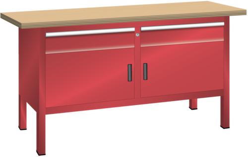 "longDescription": "LISTA Kompaktwerkbank, BxTxH: 1500x700x840mm, Material: Multiplex, 40mm stark, Max. Belastung: 1500kg, Anzahl Schubladen: 2, Anzahl Fronthöhen (Tragkraft): 2x150mm (75kg), Schubladen-Nutzfläche BxT: 500x600mm, Fächer mit Türen: 2x350mm, Anzahl Fachböden: 2 (50kg), Schliessart: Key Lock, Standard-Schliessung mit Wechselzylinder inkl. 2 Schlüsseln mit Schlüsselnummer, Farbe Gehäuse: Rubinrot RAL 3003, Farbe Schubladen/Türen: Rubinrot RAL 3003. Höchste Stabilität: Gehäuse bis 1,5 t belastbar, alle Verbindungen verschweisst. Platzsparende und übersichtliche Lagerung in variablen Unterbauten mit leichtgängigen Schubladen mit 75 kg Tragkraft mit Vollauszug und vielfältigem Einteilungsmaterial. Sichere Verschliessbarkeit mit Schliesssystem Key Lock zur gleichzeitigen Sicherung aller Schubladen und Türen vor ungewolltem Zugriff. Hohe Ausführungsvielfalt dank verschiedener Komponenten, Unterbauten, Materialien und Oberflächen. Höchster Bedienkomfort und Ergonomie durch höhenverstellbare Werkbankfüsse für ergonomisch richtige Arbeitshöhen und Beinfreiheit bei sitzenden Tätigkeiten sowie unser modulares Aufbauten-System. Jederzeit anpassbar an neue Arbeitsumgebungen durch den flexiblen Ein- und Umbau sämtlicher Komponenten im Baukastensystem<br>",