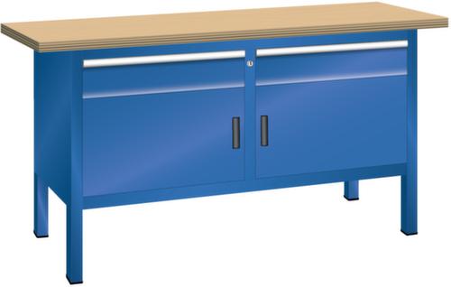 "longDescription": "LISTA Kompaktwerkbank, BxTxH: 1500x700x840mm, Material: Multiplex, 40mm stark, Max. Belastung: 1500kg, Anzahl Schubladen: 2, Anzahl Fronthöhen (Tragkraft): 2x150mm (75kg), Schubladen-Nutzfläche BxT: 500x600mm, Fächer mit Türen: 2x350mm, Anzahl Fachböden: 2 (50kg), Schliessart: Key Lock, Standard-Schliessung mit Wechselzylinder inkl. 2 Schlüsseln mit Schlüsselnummer, Farbe Gehäuse: Signalblau RAL 5005, Farbe Schubladen/Türen: Signalblau RAL 5005. Höchste Stabilität: Gehäuse bis 1,5 t belastbar, alle Verbindungen verschweisst. Platzsparende und übersichtliche Lagerung in variablen Unterbauten mit leichtgängigen Schubladen mit 75 kg Tragkraft mit Vollauszug und vielfältigem Einteilungsmaterial. Sichere Verschliessbarkeit mit Schliesssystem Key Lock zur gleichzeitigen Sicherung aller Schubladen und Türen vor ungewolltem Zugriff. Hohe Ausführungsvielfalt dank verschiedener Komponenten, Unterbauten, Materialien und Oberflächen. Höchster Bedienkomfort und Ergonomie durch höhenverstellbare Werkbankfüsse für ergonomisch richtige Arbeitshöhen und Beinfreiheit bei sitzenden Tätigkeiten sowie unser modulares Aufbauten-System. Jederzeit anpassbar an neue Arbeitsumgebungen durch den flexiblen Ein- und Umbau sämtlicher Komponenten im Baukastensystem<br>",