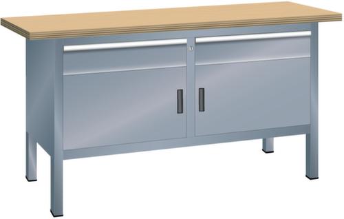 "longDescription": "LISTA Kompaktwerkbank, BxTxH: 1500x700x850mm, Material: Buche, 50mm stark, Max. Belastung: 1500kg, Anzahl Schubladen: 2, Anzahl Fronthöhen (Tragkraft): 2x150mm (75kg), Schubladen-Nutzfläche BxT: 500x600mm, Fächer mit Türen: 2x350mm, Anzahl Fachböden: 2 (50kg), Schliessart: Key Lock, Standard-Schliessung mit Wechselzylinder inkl. 2 Schlüsseln mit Schlüsselnummer, Farbe Gehäuse: Grau metallic NCS S 6502-B, Farbe Schubladen/Türen: Grau metallic NCS S 6502-B. Höchste Stabilität: Gehäuse bis 1,5 t belastbar, alle Verbindungen verschweisst. Platzsparende und übersichtliche Lagerung in variablen Unterbauten mit leichtgängigen Schubladen mit 75 kg Tragkraft mit Vollauszug und vielfältigem Einteilungsmaterial. Sichere Verschliessbarkeit mit Schliesssystem Key Lock zur gleichzeitigen Sicherung aller Schubladen und Türen vor ungewolltem Zugriff. Hohe Ausführungsvielfalt dank verschiedener Komponenten, Unterbauten, Materialien und Oberflächen. Höchster Bedienkomfort und Ergonomie durch höhenverstellbare Werkbankfüsse für ergonomisch richtige Arbeitshöhen und Beinfreiheit bei sitzenden Tätigkeiten sowie unser modulares Aufbauten-System. Jederzeit anpassbar an neue Arbeitsumgebungen durch den flexiblen Ein- und Umbau sämtlicher Komponenten im Baukastensystem<br>",