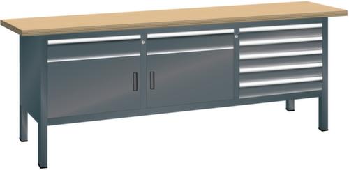 "longDescription": "LISTA Kompaktwerkbank, BxTxH: 2000x700x840mm, Material: Multiplex, 40mm stark, Max. Belastung: 1500kg, Anzahl Schubladen: 7, Anzahl Fronthöhen (Tragkraft): 5x100mm (75kg), 2x150mm (75kg), Schubladen-Nutzfläche BxT: 500x600mm, Fächer mit Türen: 2x350mm, Anzahl Fachböden: 2 (50kg), Schliessart: Key Lock, Standard-Schliessung mit Wechselzylinder inkl. 2 Schlüsseln mit Schlüsselnummer, Farbe Gehäuse: Schwarz NCS S 9000-N, Farbe Schubladen/Türen: Schwarz NCS S 9000-N. Höchste Stabilität: Gehäuse bis 1,5 t belastbar, alle Verbindungen verschweisst. Platzsparende und übersichtliche Lagerung in variablen Unterbauten mit leichtgängigen Schubladen mit 75 kg Tragkraft mit Vollauszug und vielfältigem Einteilungsmaterial. Sichere Verschliessbarkeit mit Schliesssystem Key Lock zur gleichzeitigen Sicherung aller Schubladen und Türen vor ungewolltem Zugriff. Hohe Ausführungsvielfalt dank verschiedener Komponenten, Unterbauten, Materialien und Oberflächen. Höchster Bedienkomfort und Ergonomie durch höhenverstellbare Werkbankfüsse für ergonomisch richtige Arbeitshöhen und Beinfreiheit bei sitzenden Tätigkeiten sowie unser modulares Aufbauten-System. Jederzeit anpassbar an neue Arbeitsumgebungen durch den flexiblen Ein- und Umbau sämtlicher Komponenten im Baukastensystem<br>",
