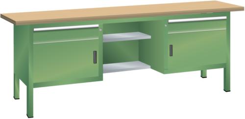 "longDescription": "LISTA Kompaktwerkbank, BxTxH: 2000x700x850mm, Material: Buche, 50mm stark, Max. Belastung: 1500kg, Anzahl Schubladen: 2, Anzahl Fronthöhen (Tragkraft): 2x150mm (75kg), Schubladen-Nutzfläche BxT: 500x600mm, Fächer mit Türen: 2x350mm, Anzahl Fachböden: 2 (50kg) / 2 (50kg) mittig zurückgesetzt, Schliessart: Key Lock, Standard-Schliessung mit Wechselzylinder inkl. 2 Schlüsseln mit Schlüsselnummer, Farbe Gehäuse: Resedagrün RAL 6011, Farbe Schubladen/Türen: Resedagrün RAL 6011. Höchste Stabilität: Gehäuse bis 1,5 t belastbar, alle Verbindungen verschweisst. Platzsparende und übersichtliche Lagerung in variablen Unterbauten mit leichtgängigen Schubladen mit 75 kg Tragkraft mit Vollauszug und vielfältigem Einteilungsmaterial. Sichere Verschliessbarkeit mit Schliesssystem Key Lock zur gleichzeitigen Sicherung aller Schubladen und Türen vor ungewolltem Zugriff. Hohe Ausführungsvielfalt dank verschiedener Komponenten, Unterbauten, Materialien und Oberflächen. Höchster Bedienkomfort und Ergonomie durch höhenverstellbare Werkbankfüsse für ergonomisch richtige Arbeitshöhen und Beinfreiheit bei sitzenden Tätigkeiten sowie unser modulares Aufbauten-System. Jederzeit anpassbar an neue Arbeitsumgebungen durch den flexiblen Ein- und Umbau sämtlicher Komponenten im Baukastensystem<br>",