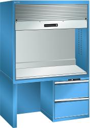 "longDescription": "LISTA Quality Station, Lista Einheit: 2 x 36x36E, BxTxH: 1434x725x1900mm, Arbeitshöhe: 750mm, Ausführung/Typ: CH, Ausstattung: Qualityschrank: mit Kunststoff-Rollladen inkl. Zylinderschloss, Anschlusskabel 3 m lang, Hartlaminatplatte als Arbeitsfläche, werkzeuglos eingelegt, Elektrifizierung mit 2-fach und 3-fach Steckdose sowie Kippschalter für die im Gehäusedeckel montierte Leuchte, Schubladenschrank: Schubladen 2x300mm, mit Vollauszug, Schubladentragkraft 75kg, Schliessart: Key Lock, Standard-Schliessung mit Wechselzylinder inkl. 2 Schlüsseln mit Schlüsselnummer, Farbe Gehäuse: Capriblau RAL 5019, Farbe Türen/Schubladen: Capriblau RAL 5019. Die Quality Station eignet sich perfekt für die Durchführung, Protokollierung und Archivierung von Prüfvorgängen im Fertigungsprozess und lässt sich flexibel anpassen. Akten, Protokolle und Hardware werden sicher verstaut<br>",