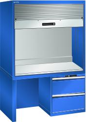 "longDescription": "LISTA Quality Station, Lista Einheit: 2 x 36x36E, BxTxH: 1434x725x1900mm, Arbeitshöhe: 750mm, Ausführung/Typ: CH, Ausstattung: Qualityschrank: mit Kunststoff-Rollladen inkl. Zylinderschloss, Anschlusskabel 3 m lang, Hartlaminatplatte als Arbeitsfläche, werkzeuglos eingelegt, Elektrifizierung mit 2-fach und 3-fach Steckdose sowie Kippschalter für die im Gehäusedeckel montierte Leuchte, Schubladenschrank: Schubladen 2x300mm, mit Vollauszug, Schubladentragkraft 75kg, Schliessart: Key Lock, Standard-Schliessung mit Wechselzylinder inkl. 2 Schlüsseln mit Schlüsselnummer, Farbe Gehäuse: Signalblau RAL 5005, Farbe Türen/Schubladen: Signalblau RAL 5005. Die Quality Station eignet sich perfekt für die Durchführung, Protokollierung und Archivierung von Prüfvorgängen im Fertigungsprozess und lässt sich flexibel anpassen. Akten, Protokolle und Hardware werden sicher verstaut<br>",