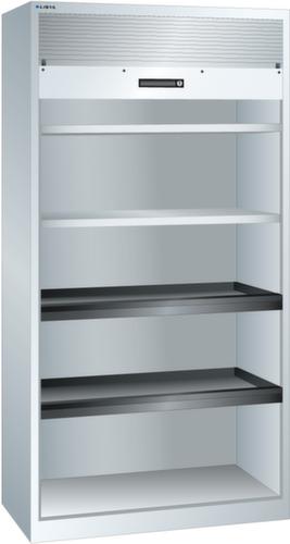 "longDescription": "LISTA Rollladenschrank, BxTxH: 1000x580x1950mm, Anzahl Verstellböden: 2 (60kg), 30mm stark, verzinkt, Anzahl Auszugböden: 2 (50kg), Schliessart: Schiebegriff-Zylinderschloss mit Wechselyzlinder inkl. 2 Schlüsseln mit Schlüsselnummer, Farbe Gehäuse/Schliessleiste: Reinweiss RAL 9010, Farbe Rollladen: aus PVC, ähnlich Lichtgrau RAL 7035, Farbe Auszugböden: Anthrazitgrau RAL 7016. Höchste Stabilität durch eine Gehäusetragkraft bis 500 kg. Sichere Verschliessbarkeit dank leichtgängigem Rollladen mit bedienerfreundlichem Schiebegriff und integriertem Zylinderschloss mit Wechselzylinder (weitere Schliesssysteme auf Anfrage). Höchster Bedienkomfort: Rollladen bleibt ohne Arretierung in jeder Höhe stehen. Allgemeine Vorteile der LISTA Schranksysteme<br>",