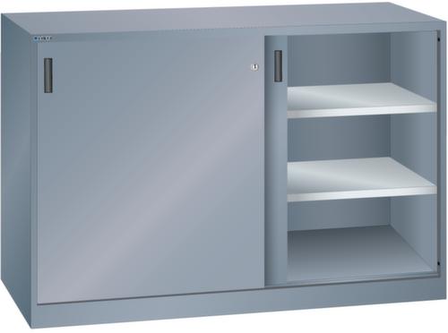 "longDescription": "LISTA Schiebetürschrank, BxTxH: 1500x500x1000mm, Anzahl Verstellböden: 4 (60kg), 30mm stark, verzinkt, Schliessart: Drehdruck-Zylinderschloss inkl. 2 Schlüsseln mit Schlüsselnummer, Ausstattung: Vollblech-Schiebetüren und Trennwand, Farbe Gehäuse: Grau metallic NCS S 6502-B, Farbe Türen: Grau metallic NCS S 6502-B. Höchste Stabilität durch eine Gehäusetragkraft von 500 kg bis 950 kg (ab Breite 1500 mm). Hohe Traglasten: 60 kg oder 100 kg pro Verstellboden, 50 kg pro Schublade/Auszugbogen. Perfekte Laufruhe dank hochwertiger, leichtgängiger und geräuscharmer Laufrollen der Schiebetüren. Allgemeine Vorteile der LISTA Schranksysteme<br>",