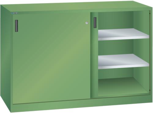 "longDescription": "LISTA Schiebetürschrank, BxTxH: 1500x580x1000mm, Anzahl Verstellböden: 4 (60kg), 30mm stark, verzinkt, Schliessart: Drehdruck-Zylinderschloss inkl. 2 Schlüsseln mit Schlüsselnummer, Ausstattung: Vollblech-Schiebetüren und Trennwand, Farbe Gehäuse: Resedagrün RAL 6011, Farbe Türen: Resedagrün RAL 6011. Höchste Stabilität durch eine Gehäusetragkraft von 500 kg bis 950 kg (ab Breite 1500 mm). Hohe Traglasten: 60 kg oder 100 kg pro Verstellboden, 50 kg pro Schublade/Auszugbogen. Perfekte Laufruhe dank hochwertiger, leichtgängiger und geräuscharmer Laufrollen der Schiebetüren. Allgemeine Vorteile der LISTA Schranksysteme<br>",