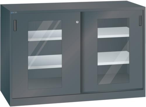 "longDescription": "LISTA Schiebetürschrank, BxTxH: 1500x580x1000mm, Anzahl Verstellböden: 4 (60kg), 30mm stark, verzinkt, Schliessart: Drehdruck-Zylinderschloss inkl. 2 Schlüsseln mit Schlüsselnummer, Ausstattung: Sichtfenster-Schiebetüren und Trennwand, Farbe Gehäuse: Schwarz NCS S 9000-N, Farbe Türen: Schwarz NCS S 9000-N. Höchste Stabilität durch eine Gehäusetragkraft von 500 kg bis 950 kg (ab Breite 1500 mm). Hohe Traglasten: 60 kg oder 100 kg pro Verstellboden, 50 kg pro Schublade/Auszugbogen. Perfekte Laufruhe dank hochwertiger, leichtgängiger und geräuscharmer Laufrollen der Schiebetüren. Allgemeine Vorteile der LISTA Schranksysteme<br>",