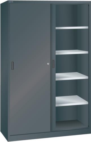"longDescription": "LISTA Schiebetürschrank, BxTxH: 1000x580x1950mm, Anzahl Verstellböden: 4 (60kg), 30mm stark, verzinkt, Schliessart: Drehdruck-Zylinderschloss inkl. 2 Schlüsseln mit Schlüsselnummer, Ausstattung: Vollblech-Schiebetüren, Farbe Gehäuse: Schwarz NCS S 9000-N, Farbe Türen: Schwarz NCS S 9000-N. Höchste Stabilität durch eine Gehäusetragkraft von 500 kg bis 950 kg (ab Breite 1500 mm). Hohe Traglasten: 60 kg oder 100 kg pro Verstellboden, 50 kg pro Schublade/Auszugbogen. Perfekte Laufruhe dank hochwertiger, leichtgängiger und geräuscharmer Laufrollen der Schiebetüren. Allgemeine Vorteile der LISTA Schranksysteme<br>",