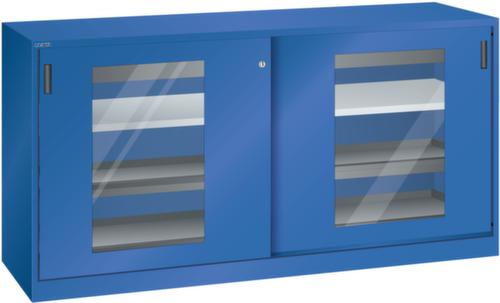 "longDescription": "LISTA Schiebetürschrank, BxTxH: 2000x580x1000mm, Anzahl Verstellböden: 2 (60kg), 30mm stark, verzinkt, Anzahl Schubladen: 2x95mm (50kg), Anzahl Auszugböden: 4 (50kg), Schliessart: Drehdruck-Zylinderschloss inkl. 2 Schlüsseln mit Schlüsselnummer, Ausstattung: Sichtfenster-Schiebetüren und Trennwand, Farbe Gehäuse: Signalblau RAL 5005, Farbe Türen: Signalblau RAL 5005, Farbe Schubladen/Auszugböden: Anthrazitgrau RAL 7016. Höchste Stabilität durch eine Gehäusetragkraft von 500 kg bis 950 kg (ab Breite 1500 mm). Hohe Traglasten: 60 kg oder 100 kg pro Verstellboden, 50 kg pro Schublade/Auszugbogen. Perfekte Laufruhe dank hochwertiger, leichtgängiger und geräuscharmer Laufrollen der Schiebetüren. Allgemeine Vorteile der LISTA Schranksysteme<br>",