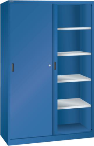 "longDescription": "LISTA Schiebetürschrank, BxTxH: 1250x400x1950mm, Anzahl Verstellböden: 4 (60kg), 30mm stark, verzinkt, Schliessart: Drehdruck-Zylinderschloss inkl. 2 Schlüsseln mit Schlüsselnummer, Ausstattung: Vollblech-Schiebetüren, Farbe Gehäuse: Enzianblau RAL 5010, Farbe Türen: Enzianblau RAL 5010. Höchste Stabilität durch eine Gehäusetragkraft von 500 kg bis 950 kg (ab Breite 1500 mm). Hohe Traglasten: 60 kg oder 100 kg pro Verstellboden, 50 kg pro Schublade/Auszugbogen. Perfekte Laufruhe dank hochwertiger, leichtgängiger und geräuscharmer Laufrollen der Schiebetüren. Allgemeine Vorteile der LISTA Schranksysteme<br>",
