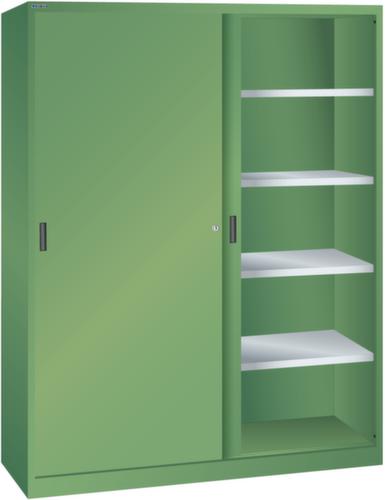 "longDescription": "LISTA Schiebetürschrank, BxTxH: 1500x400x1950mm, Anzahl Verstellböden: 8 (60kg), 30mm stark, verzinkt, Schliessart: Drehdruck-Zylinderschloss inkl. 2 Schlüsseln mit Schlüsselnummer, Ausstattung: Vollblech-Schiebetüren und Trennwand, Farbe Gehäuse: Resedagrün RAL 6011, Farbe Türen: Resedagrün RAL 6011. Höchste Stabilität durch eine Gehäusetragkraft von 500 kg bis 950 kg (ab Breite 1500 mm). Hohe Traglasten: 60 kg oder 100 kg pro Verstellboden, 50 kg pro Schublade/Auszugbogen. Perfekte Laufruhe dank hochwertiger, leichtgängiger und geräuscharmer Laufrollen der Schiebetüren. Allgemeine Vorteile der LISTA Schranksysteme<br>",