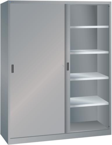 "longDescription": "LISTA Schiebetürschrank, BxTxH: 1500x400x1950mm, Anzahl Verstellböden: 8 (60kg), 30mm stark, verzinkt, Schliessart: Drehdruck-Zylinderschloss inkl. 2 Schlüsseln mit Schlüsselnummer, Ausstattung: Vollblech-Schiebetüren und Trennwand, Farbe Gehäuse: Taubengrau NCS S 4502-B, Farbe Türen: Taubengrau NCS S 4502-B. Höchste Stabilität durch eine Gehäusetragkraft von 500 kg bis 950 kg (ab Breite 1500 mm). Hohe Traglasten: 60 kg oder 100 kg pro Verstellboden, 50 kg pro Schublade/Auszugbogen. Perfekte Laufruhe dank hochwertiger, leichtgängiger und geräuscharmer Laufrollen der Schiebetüren. Allgemeine Vorteile der LISTA Schranksysteme<br>",