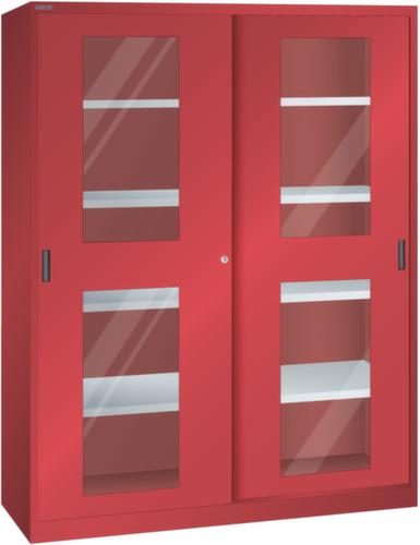 "longDescription": "LISTA Schiebetürschrank, BxTxH: 1500x500x1950mm, Anzahl Verstellböden: 8 (60kg), 30mm stark, verzinkt, Schliessart: Drehdruck-Zylinderschloss inkl. 2 Schlüsseln mit Schlüsselnummer, Ausstattung: Sichtfenster-Schiebetüren und Trennwand, Farbe Gehäuse: Rubinrot RAL 3003, Farbe Türen: Rubinrot RAL 3003. Höchste Stabilität durch eine Gehäusetragkraft von 500 kg bis 950 kg (ab Breite 1500 mm). Hohe Traglasten: 60 kg oder 100 kg pro Verstellboden, 50 kg pro Schublade/Auszugbogen. Perfekte Laufruhe dank hochwertiger, leichtgängiger und geräuscharmer Laufrollen der Schiebetüren. Allgemeine Vorteile der LISTA Schranksysteme<br>",