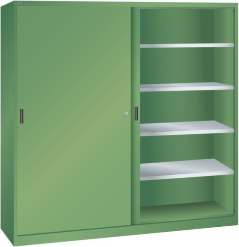 "longDescription": "LISTA Schiebetürschrank, BxTxH: 2000x500x1950mm, Anzahl Verstellböden: 8 (60kg), 30mm stark, verzinkt, Schliessart: Drehdruck-Zylinderschloss inkl. 2 Schlüsseln mit Schlüsselnummer, Ausstattung: Vollblech-Schiebetüren und Trennwand, Farbe Gehäuse: Resedagrün RAL 6011, Farbe Türen: Resedagrün RAL 6011. Höchste Stabilität durch eine Gehäusetragkraft von 500 kg bis 950 kg (ab Breite 1500 mm). Hohe Traglasten: 60 kg oder 100 kg pro Verstellboden, 50 kg pro Schublade/Auszugbogen. Perfekte Laufruhe dank hochwertiger, leichtgängiger und geräuscharmer Laufrollen der Schiebetüren. Allgemeine Vorteile der LISTA Schranksysteme<br>",