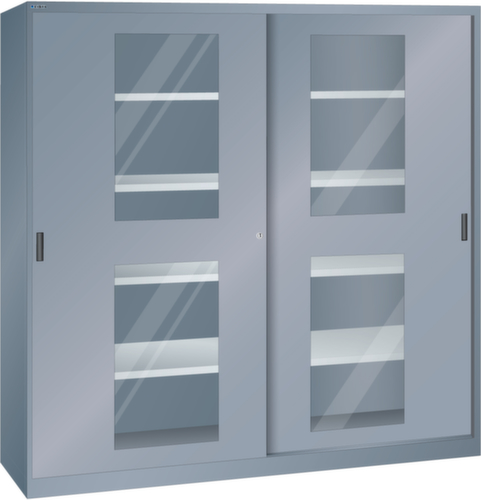 "longDescription": "LISTA Schiebetürschrank, BxTxH: 2000x500x1950mm, Anzahl Verstellböden: 8 (60kg), 30mm stark, verzinkt, Schliessart: Drehdruck-Zylinderschloss inkl. 2 Schlüsseln mit Schlüsselnummer, Ausstattung: Sichtfenster-Schiebetüren und Trennwand, Farbe Gehäuse: Grau metallic NCS S 6502-B, Farbe Türen: Grau metallic NCS S 6502-B. Höchste Stabilität durch eine Gehäusetragkraft von 500 kg bis 950 kg (ab Breite 1500 mm). Hohe Traglasten: 60 kg oder 100 kg pro Verstellboden, 50 kg pro Schublade/Auszugbogen. Perfekte Laufruhe dank hochwertiger, leichtgängiger und geräuscharmer Laufrollen der Schiebetüren. Allgemeine Vorteile der LISTA Schranksysteme<br>",