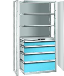 "longDescription": "LISTA Schubladenregal, Lista Einheit: 54x36E, BxTxH: 1117x706x2200mm, Schubladen-Nutzfläche BxT: 918x612mm, Ausstattung: Anbaufeld mit 3 Universalböden, 2 Verstellböden (200kg), 2 Auszugböden (75kg), 4 Schubladen (150/200/250/300mm je 200kg),1 Rückwand, Farbe Gehäuse: Lichtgrau RAL 7035, Farbe Schubladen: Lichtblau RAL 5012. Höchste Stabilität durch robuste, stabile Bauweise mit bis zu 5,5 t Belastbarkeit pro Regalfeld. Ideal für grosses und schweres Lagergut bis 200 kg pro Schublade mit Auszugböden zur flächenbündigen Lagerung. Hervorragende Laufruhe durch traversenlos geführten Differenzialauszug. Jederzeit anpassbar an neues Lagergut durch den flexiblen Ein- und Umbau von Schubladen, Auszugböden und Verstellböden im 25-mm-Raster. Allgemeine Vorteile der LISTA-Schubladenschränke<br>",