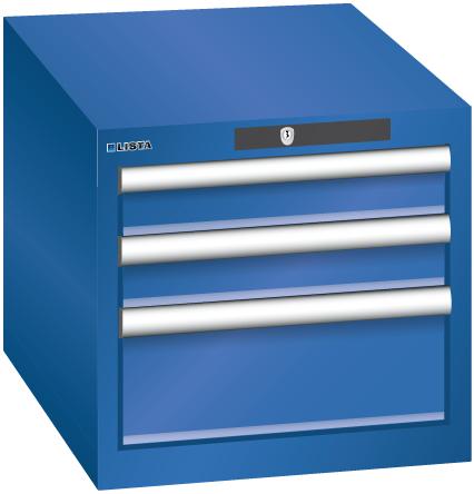 "longDescription": "LISTA Schubladenschrank, Lista Einheit: 18x27E, BxTxH: 411x572x383mm, Schubladen-Nutzfläche BxT: 306x459mm, Anzahl Schubladen: 3, Anzahl Fronthöhen (Tragkraft): 2x75mm (75kg), 1x150mm (75kg), Schliessart: Key Lock, Standard-Schliessung mit Wechselyzlinder inkl. 2 Schlüsseln mit Schlüsselnummer, Farbe Gehäuse: Signalblau RAL 5005, Farbe Schubladen: Signalblau RAL 5005. Höchste Stabilität: Gehäuse bis 4t belastbar, Schubladen mit 75 oder 200 kg Tragkraft. Maximale Ausnutzung dank Vollauszug und optimaler Mantelhöhe der Schubladen. Exzellente Schutzeigenschaften gegen Schmutz, Flüssigkeiten und mechanische Beanspruchung durch geschlossenes Gehäuse mit schlag- und abriebfester Oberfläche. Überzeugende Sicherheit: Aushebesicherung gegen Herausfallen der Schubladen und Einzelschubladensperre als Kippschutz. Korrosionsschutz durch Elektrophorese-Tauchlackierung und umweltfreundlichen Pulverlack. Optimale Ordnung und Organisation dank speziellem LISTA-Einteilungsmaterial für jeden Zweck und gelochter, geschlitzter Schubladen. Professionelle Beschriftung mit Beschriftungssoftware LISTA Script und hochklappbarer Griffleiste zum Einlegen der Etiketten. Perfekte Laufruhe durch traversenlos geführten Differenzialauszug. Flexible Anpassungsmöglichkeiten durch vorperforierte Löcher für Tischplatten (Punchout), Rollen, Schubladen, Schliesssysteme für einfaches Um- und Nachrüsten<br>",