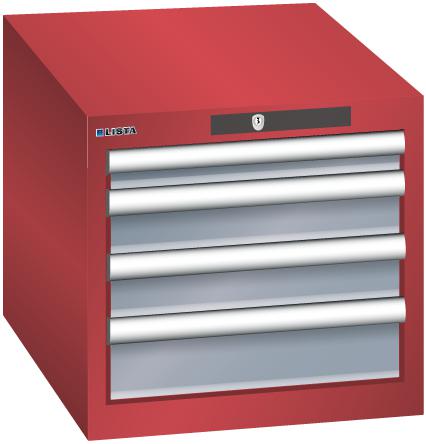 "longDescription": "LISTA Schubladenschrank, Lista Einheit: 18x27E, BxTxH: 411x572x383mm, Schubladen-Nutzfläche BxT: 306x459mm, Anzahl Schubladen: 4, Anzahl Fronthöhen (Tragkraft): 1x50mm (75kg), 2x75mm (75kg), 1x100mm (75kg), Schliessart: Key Lock, Standard-Schliessung mit Wechselyzlinder inkl. 2 Schlüsseln mit Schlüsselnummer, Farbe Gehäuse: Rubinrot RAL 3003, Farbe Schubladen: Grau metallic NCS S 6502-B. Höchste Stabilität: Gehäuse bis 4t belastbar, Schubladen mit 75 oder 200 kg Tragkraft. Maximale Ausnutzung dank Vollauszug und optimaler Mantelhöhe der Schubladen. Exzellente Schutzeigenschaften gegen Schmutz, Flüssigkeiten und mechanische Beanspruchung durch geschlossenes Gehäuse mit schlag- und abriebfester Oberfläche. Überzeugende Sicherheit: Aushebesicherung gegen Herausfallen der Schubladen und Einzelschubladensperre als Kippschutz. Korrosionsschutz durch Elektrophorese-Tauchlackierung und umweltfreundlichen Pulverlack. Optimale Ordnung und Organisation dank speziellem LISTA-Einteilungsmaterial für jeden Zweck und gelochter, geschlitzter Schubladen. Professionelle Beschriftung mit Beschriftungssoftware LISTA Script und hochklappbarer Griffleiste zum Einlegen der Etiketten. Perfekte Laufruhe durch traversenlos geführten Differenzialauszug. Flexible Anpassungsmöglichkeiten durch vorperforierte Löcher für Tischplatten (Punchout), Rollen, Schubladen, Schliesssysteme für einfaches Um- und Nachrüsten<br>",