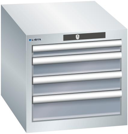 "longDescription": "LISTA Schubladenschrank, Lista Einheit: 18x27E, BxTxH: 411x572x383mm, Schubladen-Nutzfläche BxT: 306x459mm, Anzahl Schubladen: 4, Anzahl Fronthöhen (Tragkraft): 1x50mm (75kg), 2x75mm (75kg), 1x100mm (75kg), Schliessart: Code Lock, elektronisches Zahlenschloss mit 10 Ziffern für 4- bis 6-stellige Codes, bis 100 Codes, Farbe Gehäuse: Lichtgrau RAL 7035, Farbe Schubladen: Grau metallic NCS S 6502-B. Höchste Stabilität: Gehäuse bis 4t belastbar, Schubladen mit 75 oder 200 kg Tragkraft. Maximale Ausnutzung dank Vollauszug und optimaler Mantelhöhe der Schubladen. Exzellente Schutzeigenschaften gegen Schmutz, Flüssigkeiten und mechanische Beanspruchung durch geschlossenes Gehäuse mit schlag- und abriebfester Oberfläche. Überzeugende Sicherheit: Aushebesicherung gegen Herausfallen der Schubladen und Einzelschubladensperre als Kippschutz. Korrosionsschutz durch Elektrophorese-Tauchlackierung und umweltfreundlichen Pulverlack. Optimale Ordnung und Organisation dank speziellem LISTA-Einteilungsmaterial für jeden Zweck und gelochter, geschlitzter Schubladen. Professionelle Beschriftung mit Beschriftungssoftware LISTA Script und hochklappbarer Griffleiste zum Einlegen der Etiketten. Perfekte Laufruhe durch traversenlos geführten Differenzialauszug. Flexible Anpassungsmöglichkeiten durch vorperforierte Löcher für Tischplatten (Punchout), Rollen, Schubladen, Schliesssysteme für einfaches Um- und Nachrüsten<br>",