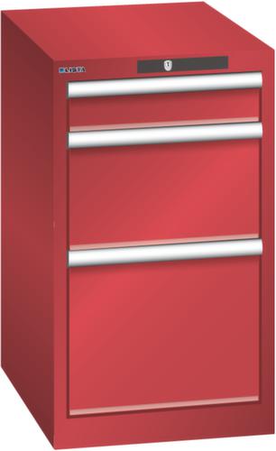 "longDescription": "LISTA Schubladenschrank, Lista Einheit: 18x27E, BxTxH: 411x572x700mm, Schubladen-Nutzfläche BxT: 306x459mm, Anzahl Schubladen: 3, Anzahl Fronthöhen (Tragkraft): 1x100mm (75kg), 1x200mm (75kg), 1x300mm (75kg), Schliessart: Key Lock, Standard-Schliessung mit Wechselyzlinder inkl. 2 Schlüsseln mit Schlüsselnummer, Farbe Gehäuse: Rubinrot RAL 3003, Farbe Schubladen: Rubinrot RAL 3003. Höchste Stabilität: Gehäuse bis 4t belastbar, Schubladen mit 75 oder 200 kg Tragkraft. Maximale Ausnutzung dank Vollauszug und optimaler Mantelhöhe der Schubladen. Exzellente Schutzeigenschaften gegen Schmutz, Flüssigkeiten und mechanische Beanspruchung durch geschlossenes Gehäuse mit schlag- und abriebfester Oberfläche. Überzeugende Sicherheit: Aushebesicherung gegen Herausfallen der Schubladen und Einzelschubladensperre als Kippschutz. Korrosionsschutz durch Elektrophorese-Tauchlackierung und umweltfreundlichen Pulverlack. Optimale Ordnung und Organisation dank speziellem LISTA-Einteilungsmaterial für jeden Zweck und gelochter, geschlitzter Schubladen. Professionelle Beschriftung mit Beschriftungssoftware LISTA Script und hochklappbarer Griffleiste zum Einlegen der Etiketten. Perfekte Laufruhe durch traversenlos geführten Differenzialauszug. Flexible Anpassungsmöglichkeiten durch vorperforierte Löcher für Tischplatten (Punchout), Rollen, Schubladen, Schliesssysteme für einfaches Um- und Nachrüsten<br>",