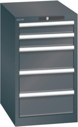 "longDescription": "LISTA Schubladenschrank, Lista Einheit: 18x27E, BxTxH: 411x572x700mm, Schubladen-Nutzfläche BxT: 306x459mm, Anzahl Schubladen: 5, Anzahl Fronthöhen (Tragkraft): 2x75mm (75kg), 3x150mm (75kg), Schliessart: Key Lock, Standard-Schliessung mit Wechselyzlinder inkl. 2 Schlüsseln mit Schlüsselnummer, Farbe Gehäuse: Schwarz NCS S 9000-N, Farbe Schubladen: Schwarz NCS S 9000-N. Höchste Stabilität: Gehäuse bis 4t belastbar, Schubladen mit 75 oder 200 kg Tragkraft. Maximale Ausnutzung dank Vollauszug und optimaler Mantelhöhe der Schubladen. Exzellente Schutzeigenschaften gegen Schmutz, Flüssigkeiten und mechanische Beanspruchung durch geschlossenes Gehäuse mit schlag- und abriebfester Oberfläche. Überzeugende Sicherheit: Aushebesicherung gegen Herausfallen der Schubladen und Einzelschubladensperre als Kippschutz. Korrosionsschutz durch Elektrophorese-Tauchlackierung und umweltfreundlichen Pulverlack. Optimale Ordnung und Organisation dank speziellem LISTA-Einteilungsmaterial für jeden Zweck und gelochter, geschlitzter Schubladen. Professionelle Beschriftung mit Beschriftungssoftware LISTA Script und hochklappbarer Griffleiste zum Einlegen der Etiketten. Perfekte Laufruhe durch traversenlos geführten Differenzialauszug. Flexible Anpassungsmöglichkeiten durch vorperforierte Löcher für Tischplatten (Punchout), Rollen, Schubladen, Schliesssysteme für einfaches Um- und Nachrüsten<br>",