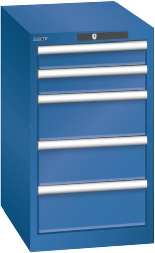 "longDescription": "LISTA Schubladenschrank, Lista Einheit: 18x27E, BxTxH: 411x572x700mm, Schubladen-Nutzfläche BxT: 306x459mm, Anzahl Schubladen: 5, Anzahl Fronthöhen (Tragkraft): 2x75mm (75kg), 3x150mm (75kg), Schliessart: Key Lock, Standard-Schliessung mit Wechselyzlinder inkl. 2 Schlüsseln mit Schlüsselnummer, Farbe Gehäuse: Enzianblau RAL 5010, Farbe Schubladen: Enzianblau RAL 5010. Höchste Stabilität: Gehäuse bis 4t belastbar, Schubladen mit 75 oder 200 kg Tragkraft. Maximale Ausnutzung dank Vollauszug und optimaler Mantelhöhe der Schubladen. Exzellente Schutzeigenschaften gegen Schmutz, Flüssigkeiten und mechanische Beanspruchung durch geschlossenes Gehäuse mit schlag- und abriebfester Oberfläche. Überzeugende Sicherheit: Aushebesicherung gegen Herausfallen der Schubladen und Einzelschubladensperre als Kippschutz. Korrosionsschutz durch Elektrophorese-Tauchlackierung und umweltfreundlichen Pulverlack. Optimale Ordnung und Organisation dank speziellem LISTA-Einteilungsmaterial für jeden Zweck und gelochter, geschlitzter Schubladen. Professionelle Beschriftung mit Beschriftungssoftware LISTA Script und hochklappbarer Griffleiste zum Einlegen der Etiketten. Perfekte Laufruhe durch traversenlos geführten Differenzialauszug. Flexible Anpassungsmöglichkeiten durch vorperforierte Löcher für Tischplatten (Punchout), Rollen, Schubladen, Schliesssysteme für einfaches Um- und Nachrüsten<br>",
