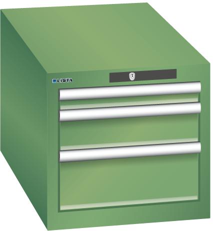 "longDescription": "LISTA Schubladenschrank, Lista Einheit: 18x36E, BxTxH: 411x725x383mm, Schubladen-Nutzfläche BxT: 306x612mm, Anzahl Schubladen: 3, Anzahl Fronthöhen (Tragkraft): 1x50mm (75kg), 1x100mm (75kg), 1x150mm (75kg), Schliessart: Code Lock, elektronisches Zahlenschloss mit 10 Ziffern für 4- bis 6-stellige Codes, bis 100 Codes, Farbe Gehäuse: Resedagrün RAL 6011, Farbe Schubladen: Resedagrün RAL 6011. Höchste Stabilität: Gehäuse bis 4t belastbar, Schubladen mit 75 oder 200 kg Tragkraft. Maximale Ausnutzung dank Vollauszug und optimaler Mantelhöhe der Schubladen. Exzellente Schutzeigenschaften gegen Schmutz, Flüssigkeiten und mechanische Beanspruchung durch geschlossenes Gehäuse mit schlag- und abriebfester Oberfläche. Überzeugende Sicherheit: Aushebesicherung gegen Herausfallen der Schubladen und Einzelschubladensperre als Kippschutz. Korrosionsschutz durch Elektrophorese-Tauchlackierung und umweltfreundlichen Pulverlack. Optimale Ordnung und Organisation dank speziellem LISTA-Einteilungsmaterial für jeden Zweck und gelochter, geschlitzter Schubladen. Professionelle Beschriftung mit Beschriftungssoftware LISTA Script und hochklappbarer Griffleiste zum Einlegen der Etiketten. Perfekte Laufruhe durch traversenlos geführten Differenzialauszug. Flexible Anpassungsmöglichkeiten durch vorperforierte Löcher für Tischplatten (Punchout), Rollen, Schubladen, Schliesssysteme für einfaches Um- und Nachrüsten<br>",