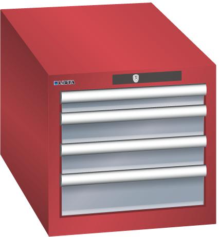 "longDescription": "LISTA Schubladenschrank, Lista Einheit: 18x36E, BxTxH: 411x725x383mm, Schubladen-Nutzfläche BxT: 306x612mm, Anzahl Schubladen: 4, Anzahl Fronthöhen (Tragkraft): 1x50mm (75kg), 2x75mm (75kg), 1x100mm (75kg), Schliessart: Key Lock, Standard-Schliessung mit Wechselyzlinder inkl. 2 Schlüsseln mit Schlüsselnummer, Farbe Gehäuse: Rubinrot RAL 3003, Farbe Schubladen: Grau metallic NCS S 6502-B. Höchste Stabilität: Gehäuse bis 4t belastbar, Schubladen mit 75 oder 200 kg Tragkraft. Maximale Ausnutzung dank Vollauszug und optimaler Mantelhöhe der Schubladen. Exzellente Schutzeigenschaften gegen Schmutz, Flüssigkeiten und mechanische Beanspruchung durch geschlossenes Gehäuse mit schlag- und abriebfester Oberfläche. Überzeugende Sicherheit: Aushebesicherung gegen Herausfallen der Schubladen und Einzelschubladensperre als Kippschutz. Korrosionsschutz durch Elektrophorese-Tauchlackierung und umweltfreundlichen Pulverlack. Optimale Ordnung und Organisation dank speziellem LISTA-Einteilungsmaterial für jeden Zweck und gelochter, geschlitzter Schubladen. Professionelle Beschriftung mit Beschriftungssoftware LISTA Script und hochklappbarer Griffleiste zum Einlegen der Etiketten. Perfekte Laufruhe durch traversenlos geführten Differenzialauszug. Flexible Anpassungsmöglichkeiten durch vorperforierte Löcher für Tischplatten (Punchout), Rollen, Schubladen, Schliesssysteme für einfaches Um- und Nachrüsten<br>",