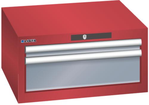 "longDescription": "LISTA Schubladenschrank, Lista Einheit: 27x27E, BxTxH: 564x572x283mm, Schubladen-Nutzfläche BxT: 459x459mm, Anzahl Schubladen: 2, Anzahl Fronthöhen (Tragkraft): 1x50mm (75kg), 1x150mm (75kg), Schliessart: Code Lock, elektronisches Zahlenschloss mit 10 Ziffern für 4- bis 6-stellige Codes, bis 100 Codes, Farbe Gehäuse: Rubinrot RAL 3003, Farbe Schubladen: Grau metallic NCS S 6502-B. Höchste Stabilität: Gehäuse bis 4t belastbar, Schubladen mit 75 oder 200 kg Tragkraft. Maximale Ausnutzung dank Vollauszug und optimaler Mantelhöhe der Schubladen. Exzellente Schutzeigenschaften gegen Schmutz, Flüssigkeiten und mechanische Beanspruchung durch geschlossenes Gehäuse mit schlag- und abriebfester Oberfläche. Überzeugende Sicherheit: Aushebesicherung gegen Herausfallen der Schubladen und Einzelschubladensperre als Kippschutz. Korrosionsschutz durch Elektrophorese-Tauchlackierung und umweltfreundlichen Pulverlack. Optimale Ordnung und Organisation dank speziellem LISTA-Einteilungsmaterial für jeden Zweck und gelochter, geschlitzter Schubladen. Professionelle Beschriftung mit Beschriftungssoftware LISTA Script und hochklappbarer Griffleiste zum Einlegen der Etiketten. Perfekte Laufruhe durch traversenlos geführten Differenzialauszug. Flexible Anpassungsmöglichkeiten durch vorperforierte Löcher für Tischplatten (Punchout), Rollen, Schubladen, Schliesssysteme für einfaches Um- und Nachrüsten<br>",