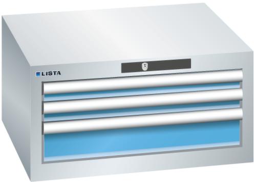 "longDescription": "LISTA Schubladenschrank, Lista Einheit: 27x27E, BxTxH: 564x572x283mm, Schubladen-Nutzfläche BxT: 459x459mm, Anzahl Schubladen: 3, Anzahl Fronthöhen (Tragkraft): 2x50mm (75kg), 1x100mm (75kg), Schliessart: Key Lock, Standard-Schliessung mit Wechselyzlinder inkl. 2 Schlüsseln mit Schlüsselnummer, Farbe Gehäuse: Lichtgrau RAL 7035, Farbe Schubladen: Lichtblau RAL 5012. Höchste Stabilität: Gehäuse bis 4t belastbar, Schubladen mit 75 oder 200 kg Tragkraft. Maximale Ausnutzung dank Vollauszug und optimaler Mantelhöhe der Schubladen. Exzellente Schutzeigenschaften gegen Schmutz, Flüssigkeiten und mechanische Beanspruchung durch geschlossenes Gehäuse mit schlag- und abriebfester Oberfläche. Überzeugende Sicherheit: Aushebesicherung gegen Herausfallen der Schubladen und Einzelschubladensperre als Kippschutz. Korrosionsschutz durch Elektrophorese-Tauchlackierung und umweltfreundlichen Pulverlack. Optimale Ordnung und Organisation dank speziellem LISTA-Einteilungsmaterial für jeden Zweck und gelochter, geschlitzter Schubladen. Professionelle Beschriftung mit Beschriftungssoftware LISTA Script und hochklappbarer Griffleiste zum Einlegen der Etiketten. Perfekte Laufruhe durch traversenlos geführten Differenzialauszug. Flexible Anpassungsmöglichkeiten durch vorperforierte Löcher für Tischplatten (Punchout), Rollen, Schubladen, Schliesssysteme für einfaches Um- und Nachrüsten<br>",