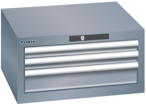 "longDescription": "LISTA Schubladenschrank, Lista Einheit: 27x27E, BxTxH: 564x572x283mm, Schubladen-Nutzfläche BxT: 459x459mm, Anzahl Schubladen: 3, Anzahl Fronthöhen (Tragkraft): 2x50mm (75kg), 1x100mm (75kg), Schliessart: Code Lock, elektronisches Zahlenschloss mit 10 Ziffern für 4- bis 6-stellige Codes, bis 100 Codes, Farbe Gehäuse: Grau metallic NCS S 6502-B, Farbe Schubladen: Grau metallic NCS S 6502-B. Höchste Stabilität: Gehäuse bis 4t belastbar, Schubladen mit 75 oder 200 kg Tragkraft. Maximale Ausnutzung dank Vollauszug und optimaler Mantelhöhe der Schubladen. Exzellente Schutzeigenschaften gegen Schmutz, Flüssigkeiten und mechanische Beanspruchung durch geschlossenes Gehäuse mit schlag- und abriebfester Oberfläche. Überzeugende Sicherheit: Aushebesicherung gegen Herausfallen der Schubladen und Einzelschubladensperre als Kippschutz. Korrosionsschutz durch Elektrophorese-Tauchlackierung und umweltfreundlichen Pulverlack. Optimale Ordnung und Organisation dank speziellem LISTA-Einteilungsmaterial für jeden Zweck und gelochter, geschlitzter Schubladen. Professionelle Beschriftung mit Beschriftungssoftware LISTA Script und hochklappbarer Griffleiste zum Einlegen der Etiketten. Perfekte Laufruhe durch traversenlos geführten Differenzialauszug. Flexible Anpassungsmöglichkeiten durch vorperforierte Löcher für Tischplatten (Punchout), Rollen, Schubladen, Schliesssysteme für einfaches Um- und Nachrüsten<br>",