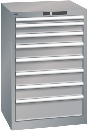 "longDescription": "LISTA Schubladenschrank, Lista Einheit: 27x27E, BxTxH: 564x572x850mm, Schubladen-Nutzfläche BxT: 459x459mm, Anzahl Schubladen: 8, Anzahl Fronthöhen (Tragkraft): 1x 50mm (75kg), 2x 75mm (75kg), 4x100mm (75kg), 1x150mm (75kg), Schliessart: Code Lock, elektronisches Zahlenschloss mit 10 Ziffern für 4- bis 6-stellige Codes, bis 100 Codes, Farbe Gehäuse: Taubengrau NCS S 4502-B, Farbe Schubladen: Taubengrau NCS S 4502-B. Höchste Stabilität: Gehäuse bis 4t belastbar, Schubladen mit 75 oder 200 kg Tragkraft. Maximale Ausnutzung dank Vollauszug und optimaler Mantelhöhe der Schubladen. Exzellente Schutzeigenschaften gegen Schmutz, Flüssigkeiten und mechanische Beanspruchung durch geschlossenes Gehäuse mit schlag- und abriebfester Oberfläche. Überzeugende Sicherheit: Aushebesicherung gegen Herausfallen der Schubladen und Einzelschubladensperre als Kippschutz. Korrosionsschutz durch Elektrophorese-Tauchlackierung und umweltfreundlichen Pulverlack. Optimale Ordnung und Organisation dank speziellem LISTA-Einteilungsmaterial für jeden Zweck und gelochter, geschlitzter Schubladen. Professionelle Beschriftung mit Beschriftungssoftware LISTA Script und hochklappbarer Griffleiste zum Einlegen der Etiketten. Perfekte Laufruhe durch traversenlos geführten Differenzialauszug. Flexible Anpassungsmöglichkeiten durch vorperforierte Löcher für Tischplatten (Punchout), Rollen, Schubladen, Schliesssysteme für einfaches Um- und Nachrüsten<br>",
